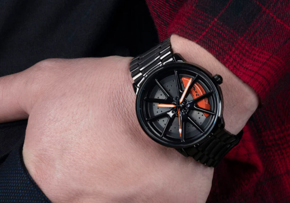 We have two different type of watches, spinning and non-spinning watches. Not every model is available in both. The non-spinning watch is just like your traditional watch. The spinning variant is unique. When you twist your wrist, the wheel inside the watch face spins freely. This mimics the effect of a moving car!