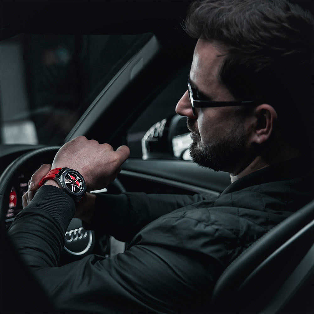 Versatile and stylish, our automotive-inspired watches effortlessly transition from work to parties, ensuring you make a statement wherever you go.